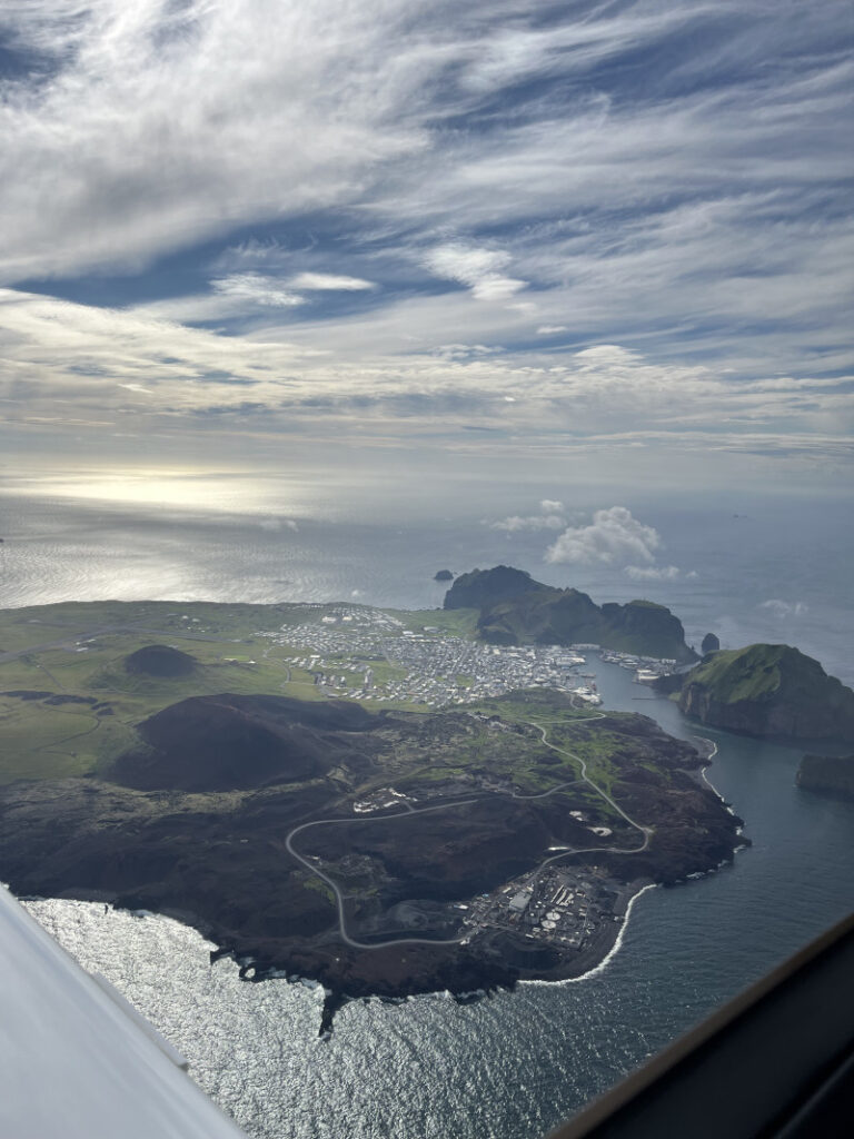 Na 4 uur vliegen komt langzaam de IJslandse kust in beeld waar we onderlangs zouden vliegen naar Reykjavik. Onderweg kwamen we nog een mooi eiland tegen. Daarna naar de bestemming voor landing.